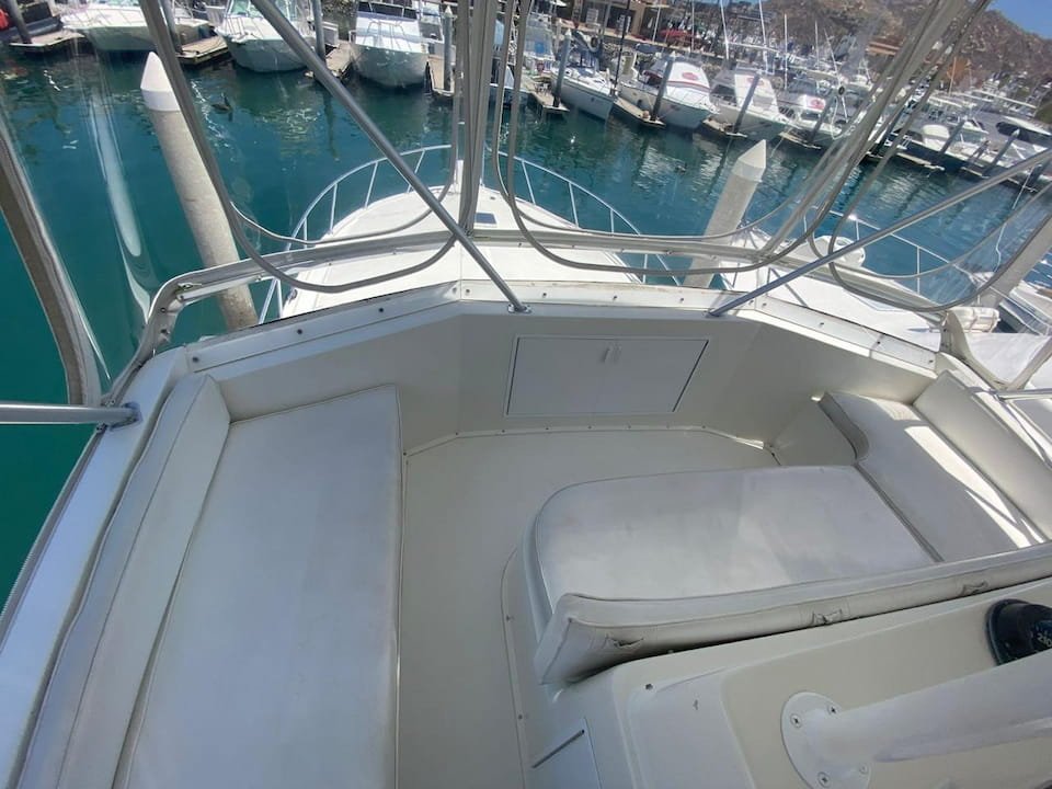loungers at the bow, seating at the stern, a large living