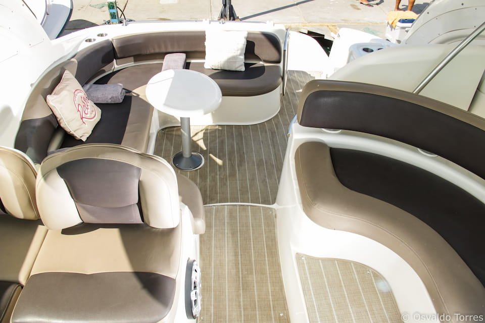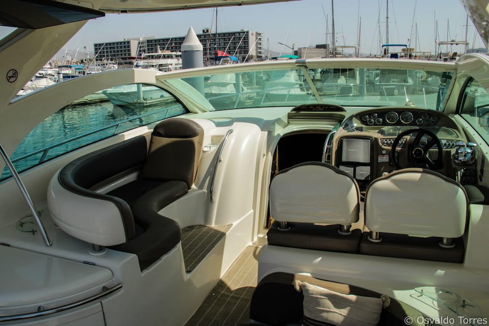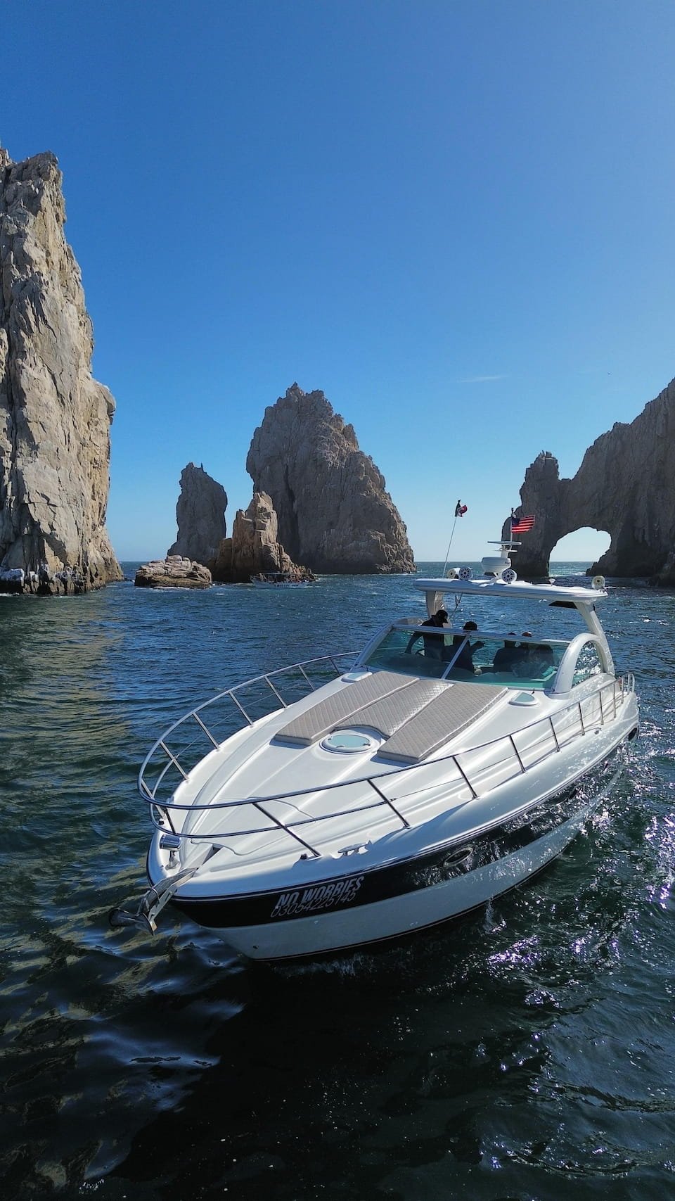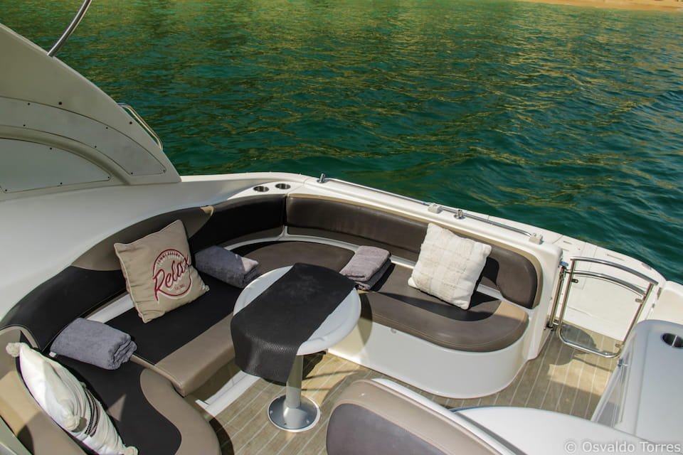 45 ft private yacht ideal for exploring Cabo landmarks; holds up to 10 guests, with two cabins, a crew of three, and a cruising speed of 26 knots.
