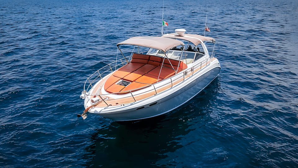 38 ft Sea Ray Sundancer for day charters; designed for comfort with a salon, sunbathing areas, a swim platform, and capacity for up to 12 passengers.